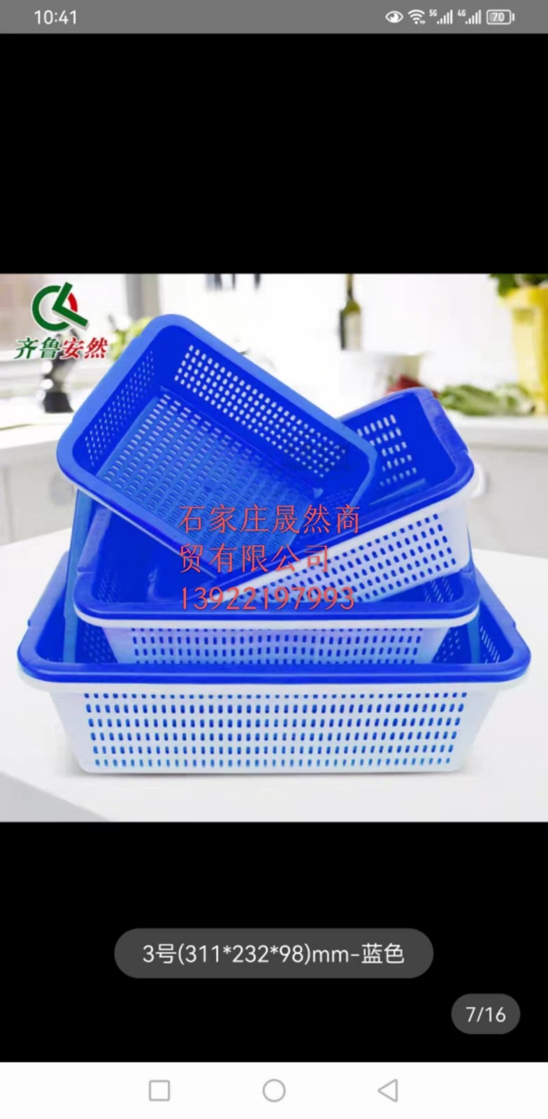 塑料筐白色 齊魯安然長311*寬232*高98MM